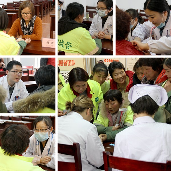 女性养生讲座结束后,志愿者团队为近200位环卫阿姨提供了免费身体检查以及健康咨询服务,