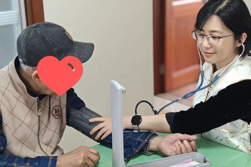 在回访过程中,护士长细心地询问了钮大爷的生活起居和康复情况,并为他测量了血压,进行了详细的用药指导。针对大爷手术后左腿比右腿短2厘米的情况,护士长还仔细观察了他的行走步态,并提出了专业的康复建议。