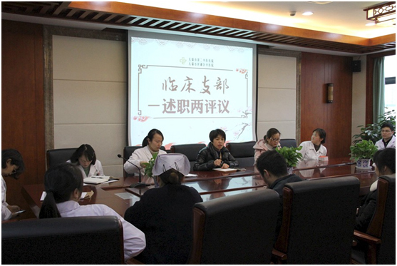 “一述职两评议”工作会上,行政后勤支部书记王晓燕同志、临床支部书记章朱峰同志作述职报告,行政后勤支部、临床支部全体党员在认真听取述职后,本着实事求是的态度进行了年度民主评议。