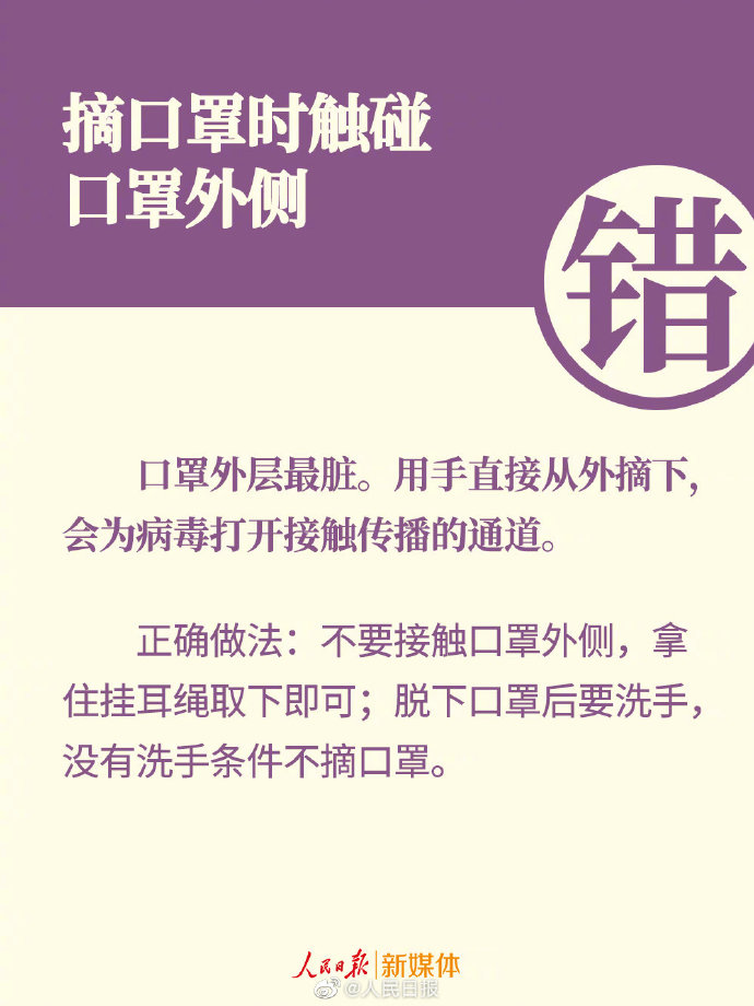 口罩未贴合面部,戴口罩不分正反,摘口罩时触碰口罩外侧…这些错误做法会增加染病风险。口罩的错误戴法及纠正↓↓转发提醒!