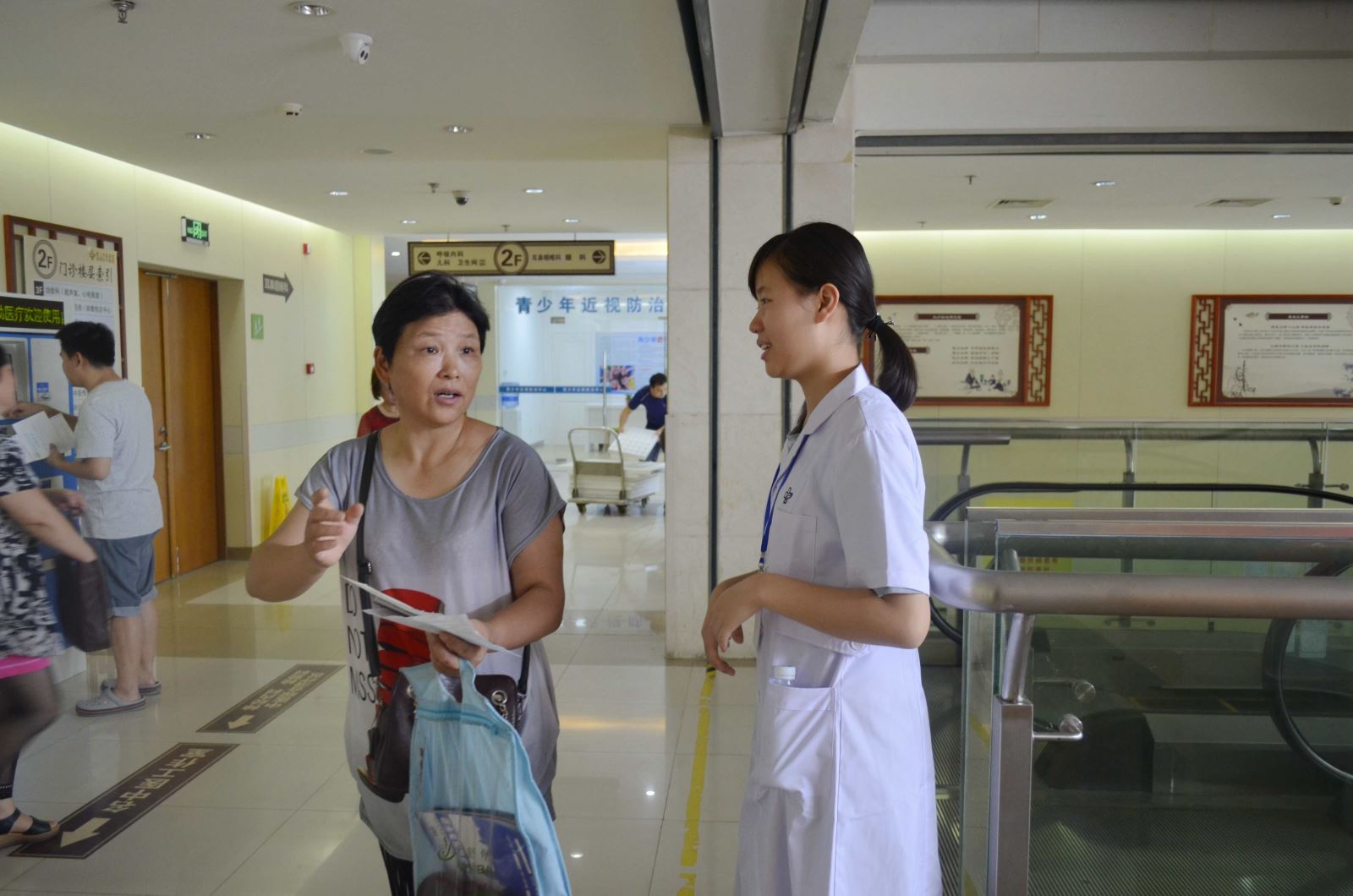 “小医生”们在经过培训后,已对门诊科室的分布了然于心,门诊大厅的每个楼层都安排了几个“小医生”导医导诊,青春洋溢的他们将自己的热情传递给了前来就诊的百姓,让阿公阿婆们也不自觉扬起了笑容。
