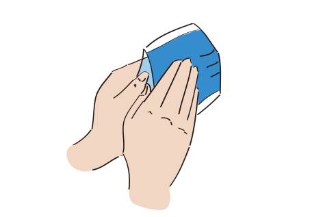 ✦ 将双手指尖沿着鼻梁金属条,由中间向两边,慢慢向内按压,直至紧贴鼻梁。再适当调整口罩,使口罩周边充分贴合面部。
