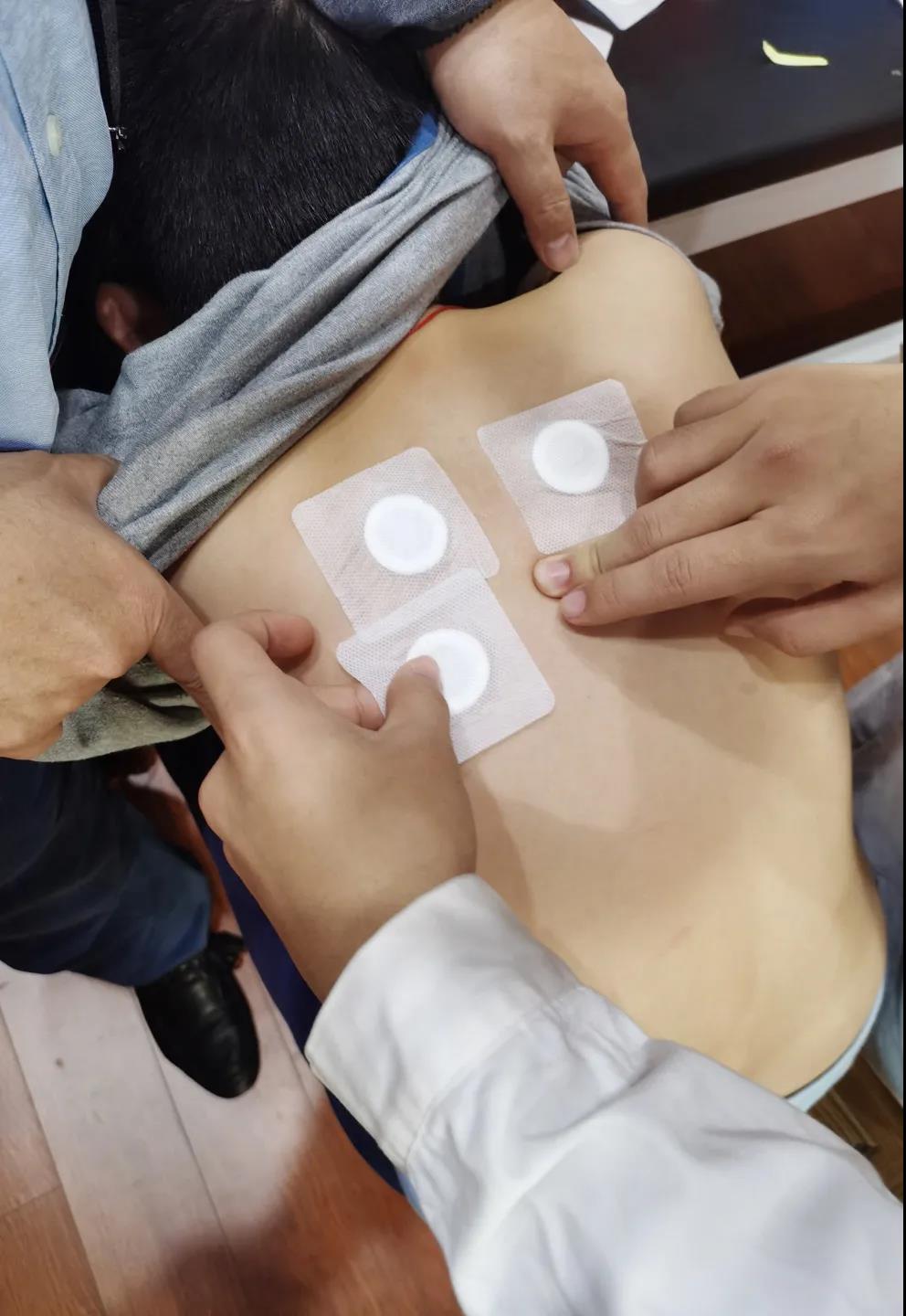 “我儿子是腺样体肥大,今年8岁半,平时容易感冒,医生建议来贴三九贴,我想试试……”一位爸爸带着儿子来尝试贴敷三九贴,第一次接触三九贴,他充满好奇,贴的过程中问得很仔细。