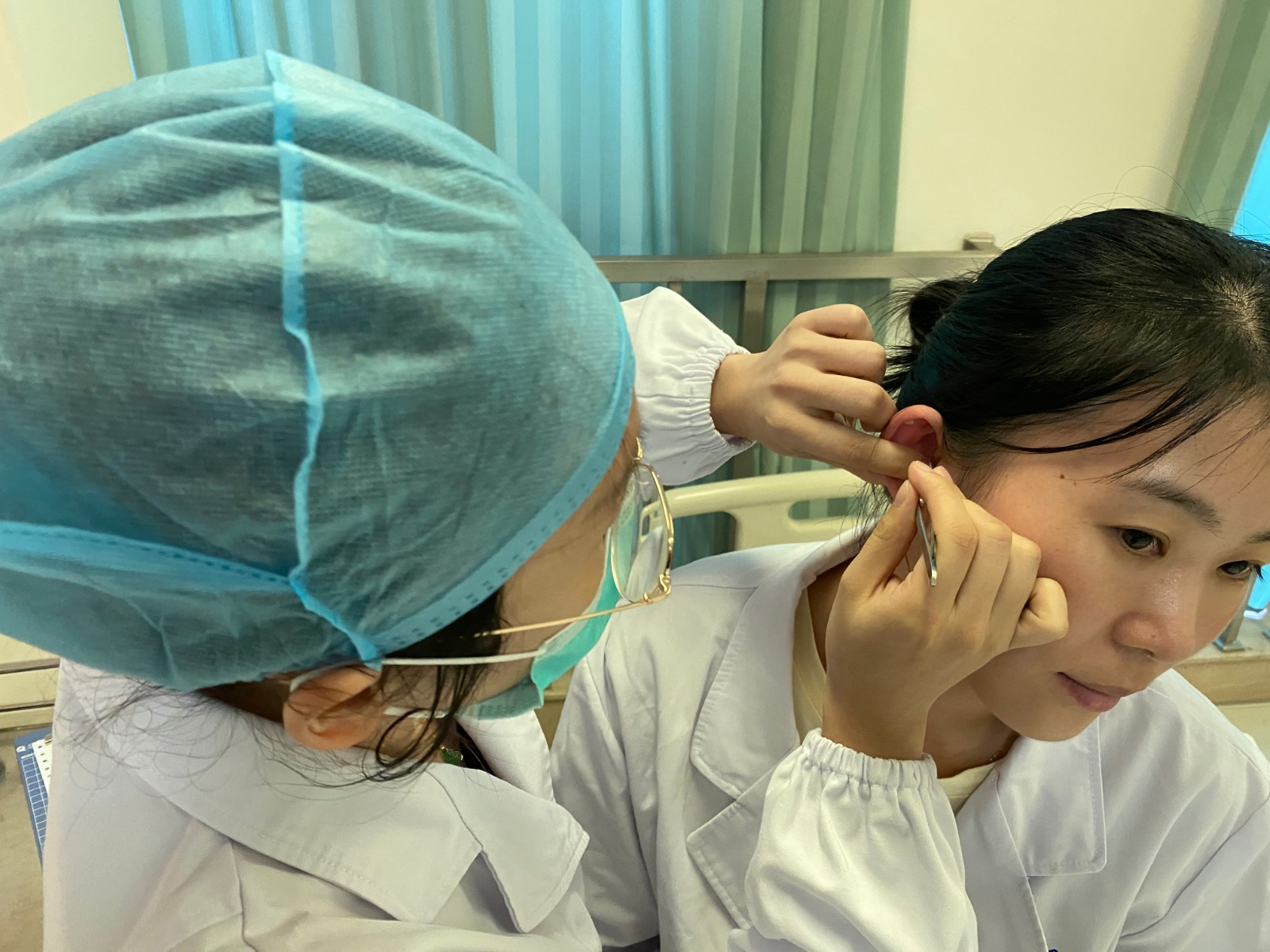 为进一步推动中医适宜技术进入基层,此次特选取临床疗效明显、接受度高的四项中医技能操作,包含耳穴压豆、穴位贴敷、中药熏洗、艾灸以及“八段锦”健身功法,进行针对性集中培训,全面提升了护理骨干的操作技术水平。