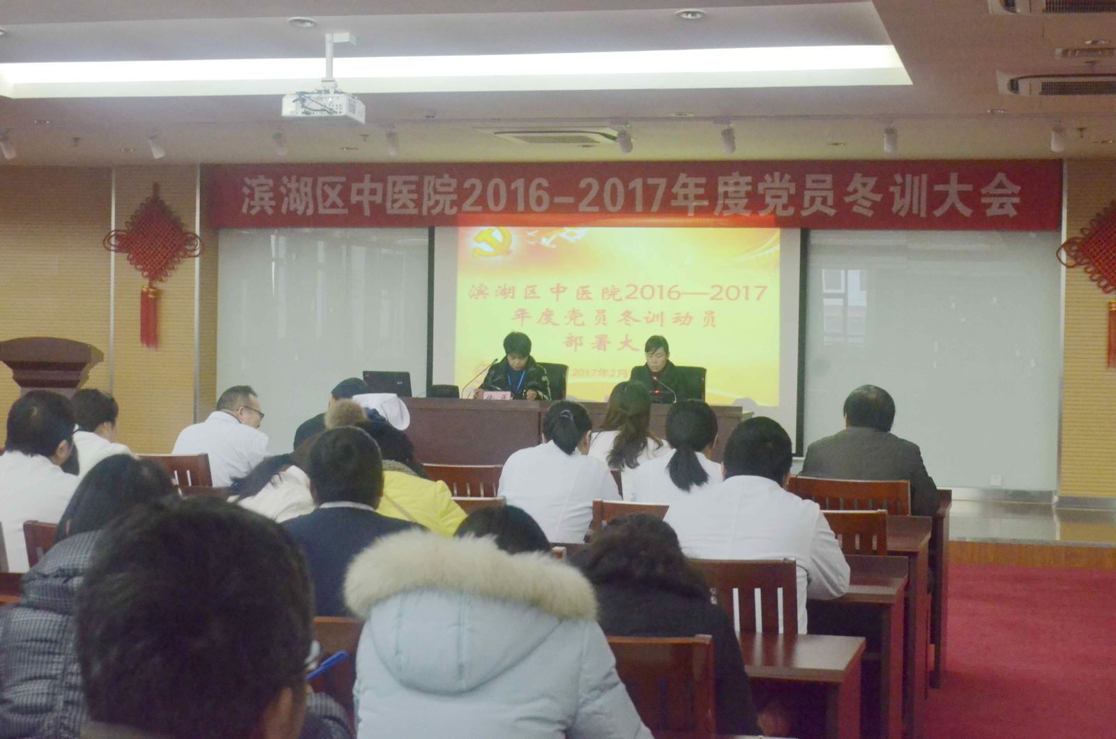 为全面贯彻从严治党要求,深入学习党的十八届六中全会和省市区党代会精神,进一步加强党员教育管理,2月23日下午,无锡市第二中医医院召开了2016-2017年度党员冬训大会,会议由党总支副书记徐医同志主持,党总支书记戴美同志做动员部署,全体党员参加了此次会议。