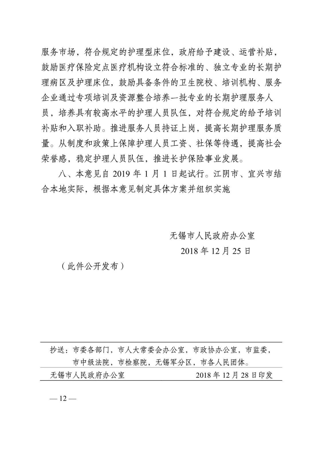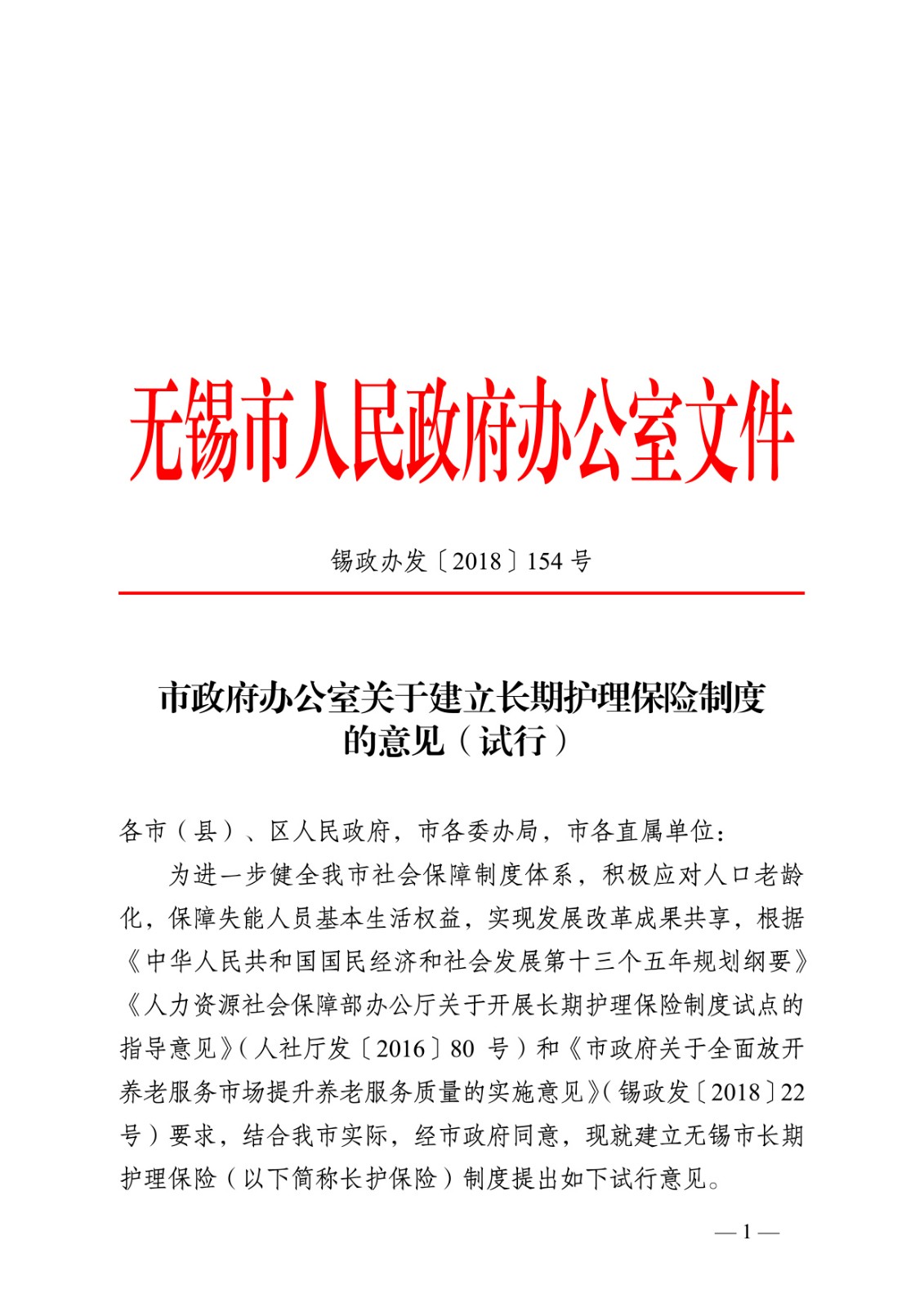 市政府办公室关于建立长期护理保险制度的意见(试行)